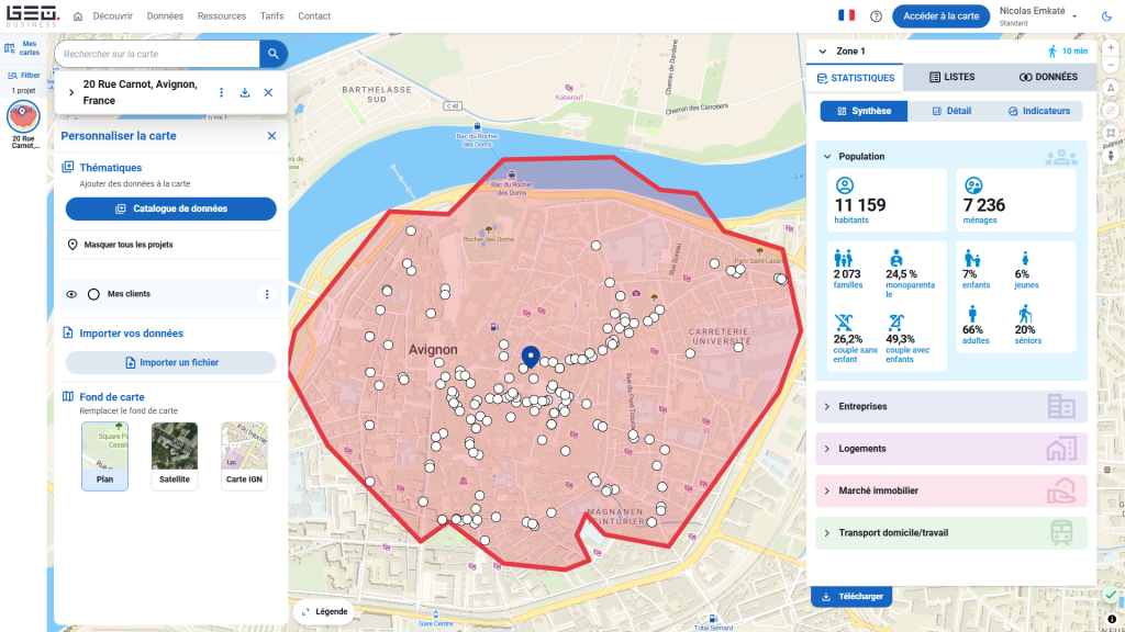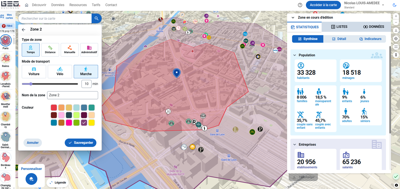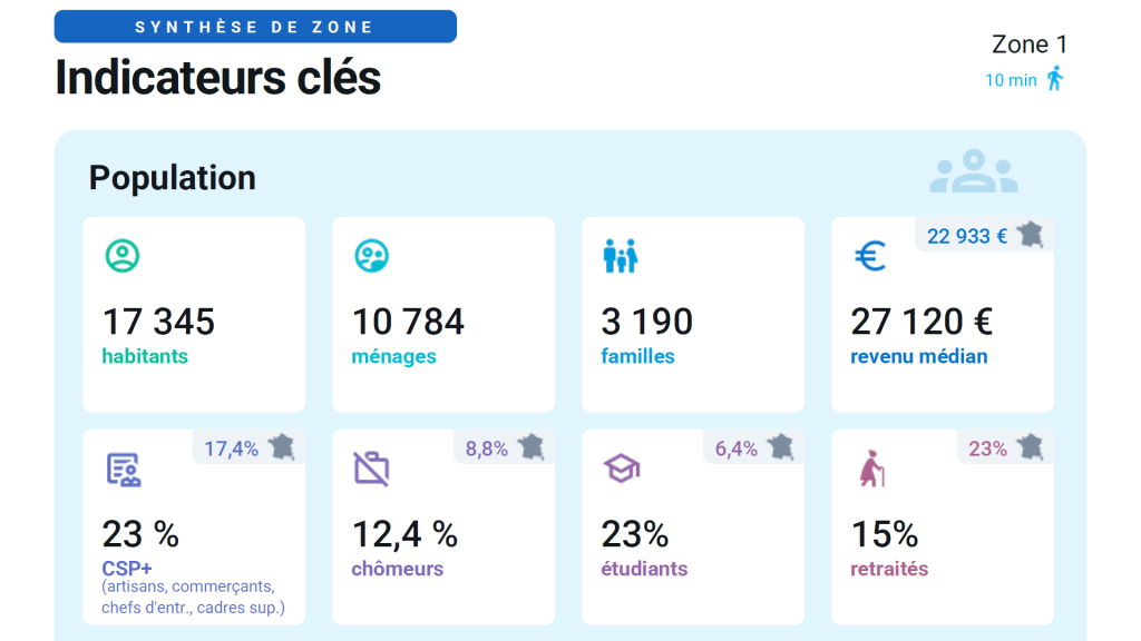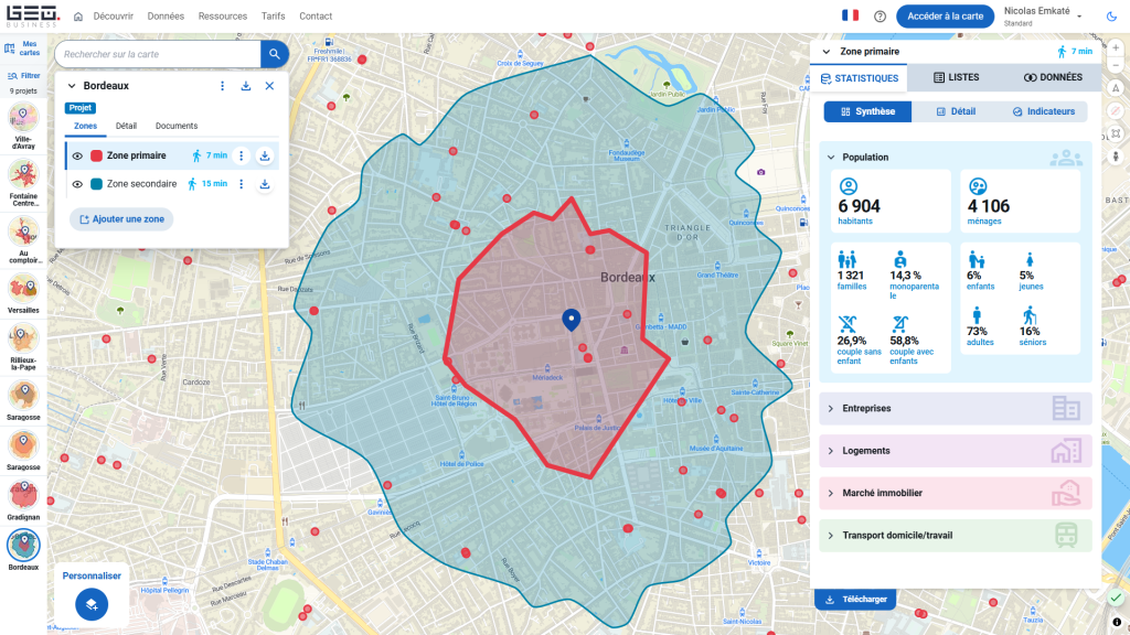 Structurez, développez et animez votre réseau de points de vente grâce à une plateforme simple, puissance et 100% autonome. En quelques clics, réalisez vos études de marché, créez vos zones de chalandise et repérez les meilleures opportunités d’implantation.